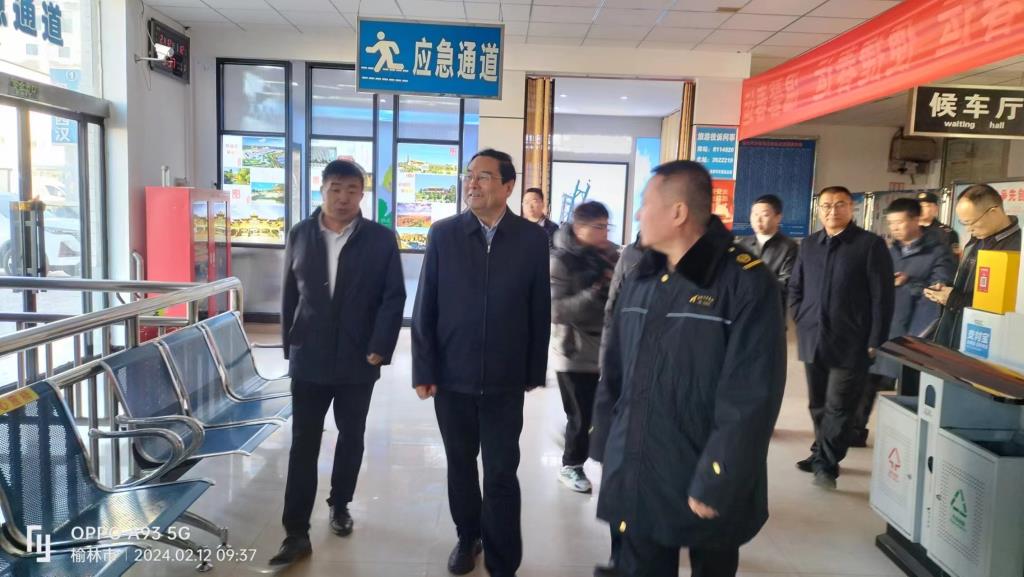 2024年2月12日上午9時(shí)30分,榆林市市委書記張曉光一行來到榆林汽車客運(yùn)北站進(jìn)行春節(jié)安全檢查和春節(jié)慰問工作。市交通局局長(zhǎng)殷海艦、集團(tuán)公司董事長(zhǎng)喬宏澤、副總經(jīng)理喬建斌、何瑞龍及榆林汽車客運(yùn)北站站長(zhǎng)田剛等陪同檢查慰問。