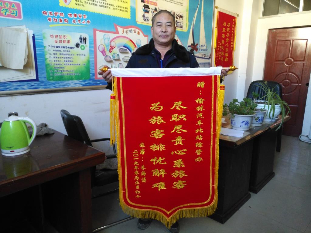 榆林客運(yùn)北站員工以集團(tuán)公司企業(yè)文化為載體,心懷回饋社會(huì)的初心,在春運(yùn)時(shí)節(jié)為旅人提供暖心幫助,以實(shí)際行動(dòng)身體力行,踐行服務(wù)理念和崗位服務(wù)工作,為春運(yùn)期間出行的旅客排憂解難,主動(dòng)幫旅客找回丟失的皮包、手機(jī),得到旅客的贊揚(yáng)并贈(zèng)送了錦旗。