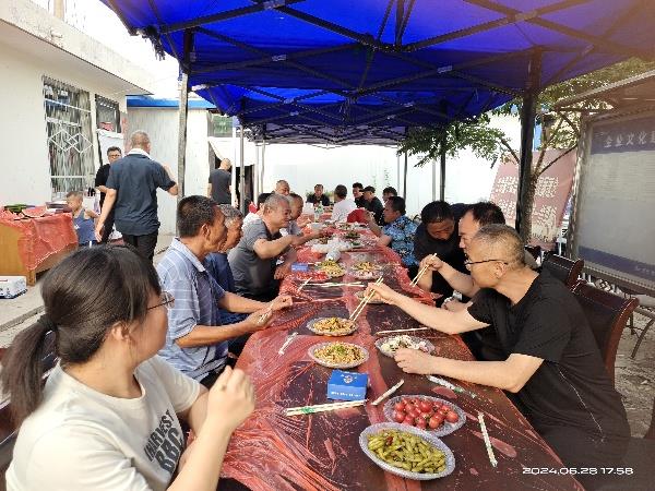 游戲結束后,溫馨的聚餐時刻悄然來臨??v使烈日炎炎,暑氣逼人,卻絲毫未減大家的熱情。一幅自力更生、愉快勞作的大生產繁忙且歡樂的畫面在眼前呈現(xiàn)。有的精心燉制羊肉,有的熟練地包餃子,有的專注地穿肉串,有的細心地切水果,大家分工明確,緊密配合。琳瑯滿目的美食在辛勤勞作的孕育下豐盛登場。大家圍坐一團,一邊品嘗著自己的勞動成果,一邊愉快地交流分享,現(xiàn)場氛圍輕松又愉悅。