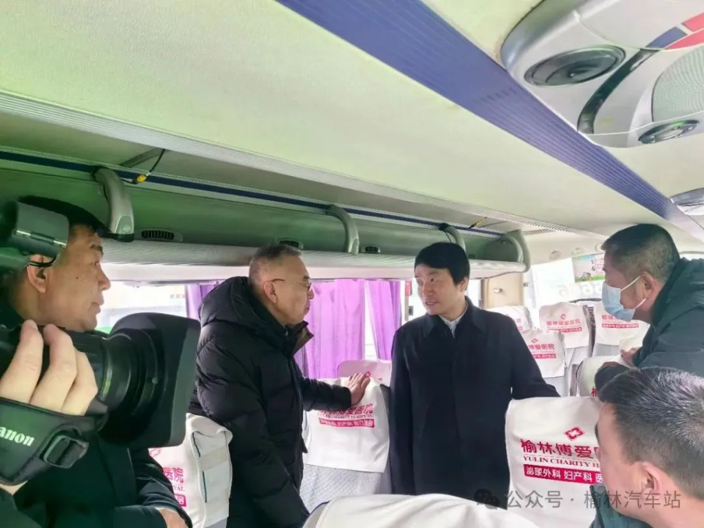 2024年2月14日上午10時許,榆林市市長張勝利、市交通局局長殷海艦一行蒞臨榆林汽車站檢查車站春運安全生產(chǎn)保障工作。集團(tuán)公司董事長喬宏澤、副總經(jīng)理喬建斌、榆林汽車站站長侯勇鵬等陪同檢查。