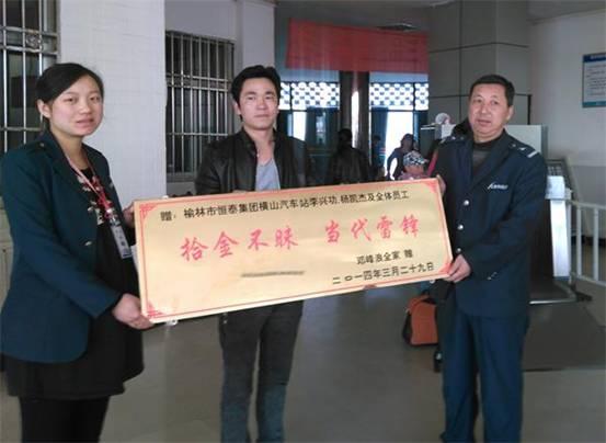 陽(yáng)春三月,陣陣春風(fēng)和煦而來(lái), 3月29日早8時(shí)許,恒泰集團(tuán)橫山汽車(chē)站的員工們都在各自的崗位上忙碌著,這時(shí),候車(chē)室進(jìn)來(lái)一位不同尋常的年輕人,他雙手捧著一塊熠熠發(fā)光的金色牌匾,上面寫(xiě)著紅色的大字“拾金不昧 當(dāng)代雷鋒”,站領(lǐng)導(dǎo)趕忙迎上前去詢(xún)問(wèn),才知道發(fā)生了什么事情。