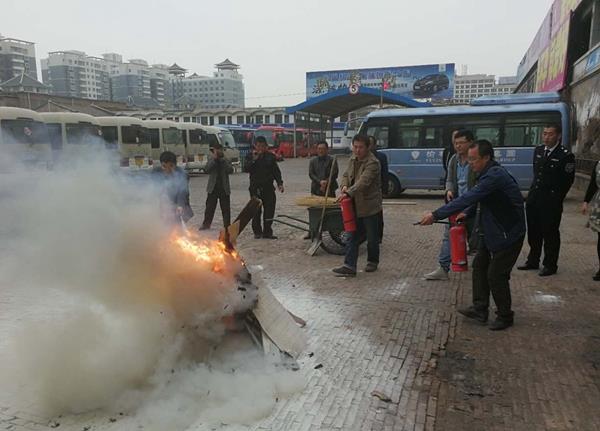 理論聯系實際,為了擴大培訓效果,提高消防人員的實操能力,聽完專題講座后立即組織所有培訓人員進行了滅火演練,學員們提著滅火器,來到榆林汽車站下客區(qū)正在燃燒的熏熏烈焰前,在老師的指導下,逐一有序地實際操作了干粉滅火器滅火。參加培訓的每位學員通過親身體驗,熟悉掌握了使用滅火器滅火的要領,提升了消防應急反應能力。